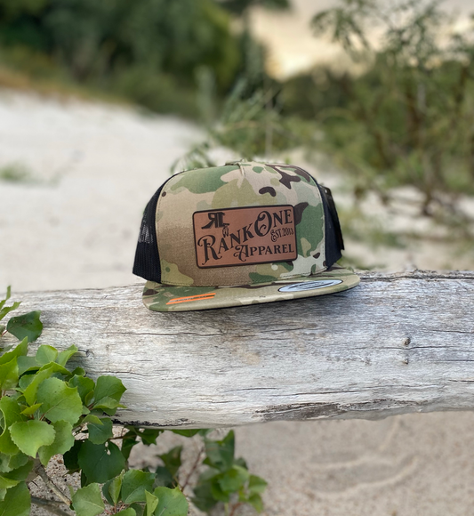 Rank One Est. 2013 Leather Patch and Multi Cam Snap Back
